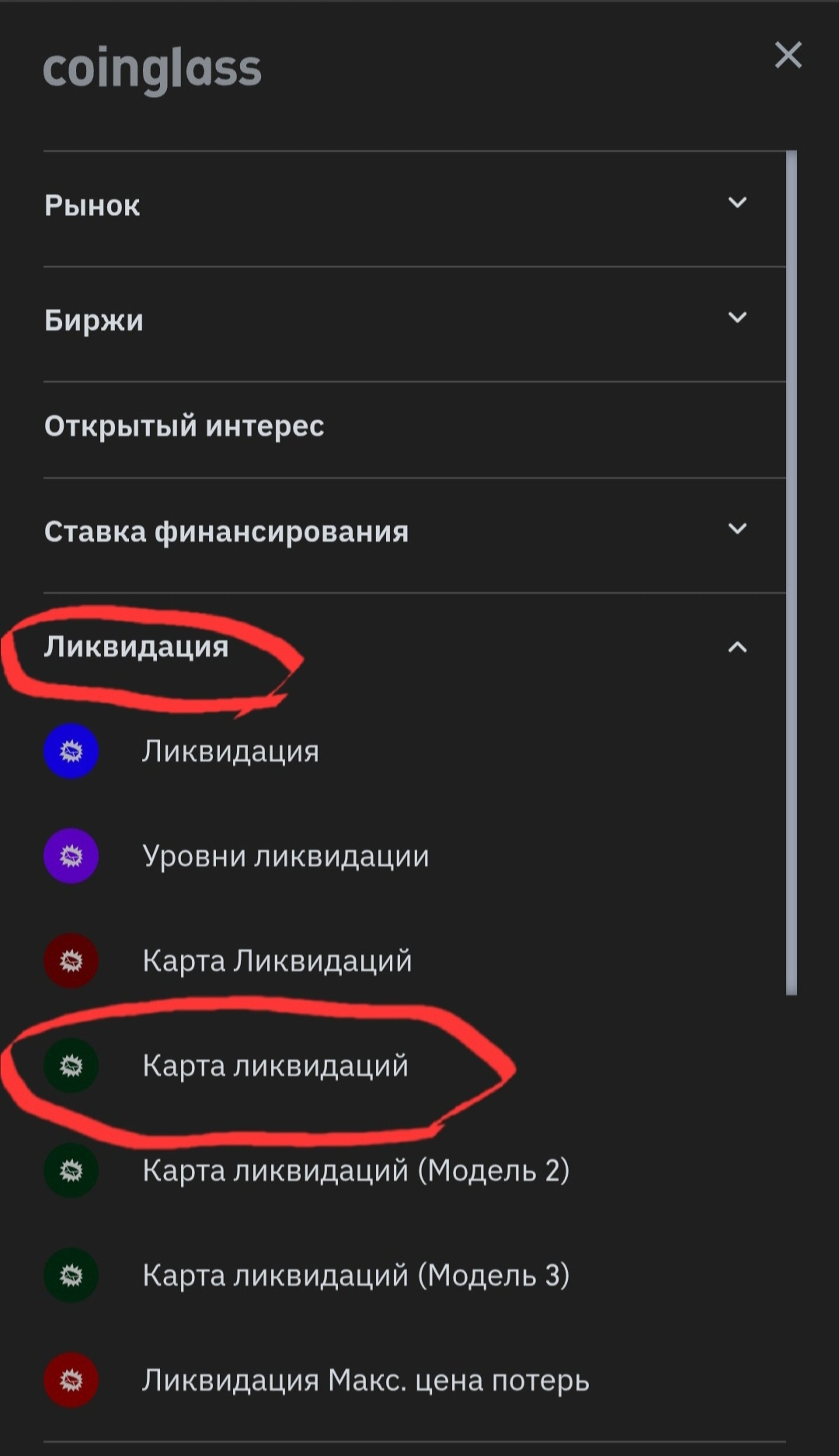 2️⃣ Налаштування: У меню обираємо розділ «Ликвидация» -> «Карта ликвидаций».