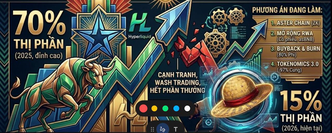 Thị phần: AsterDex từng chiếm tới 70% thị phần Perp DEX (giao dịch phái sinh phi tập trung) vào cuối năm 2025. Tuy nhiên, hiện nay dự án đang bị cạnh tranh gay gắt bởi các đối thủ như Hyperliquid, khiến thị phần giảm xuống còn khoảng 15% vào tháng 4/2026.