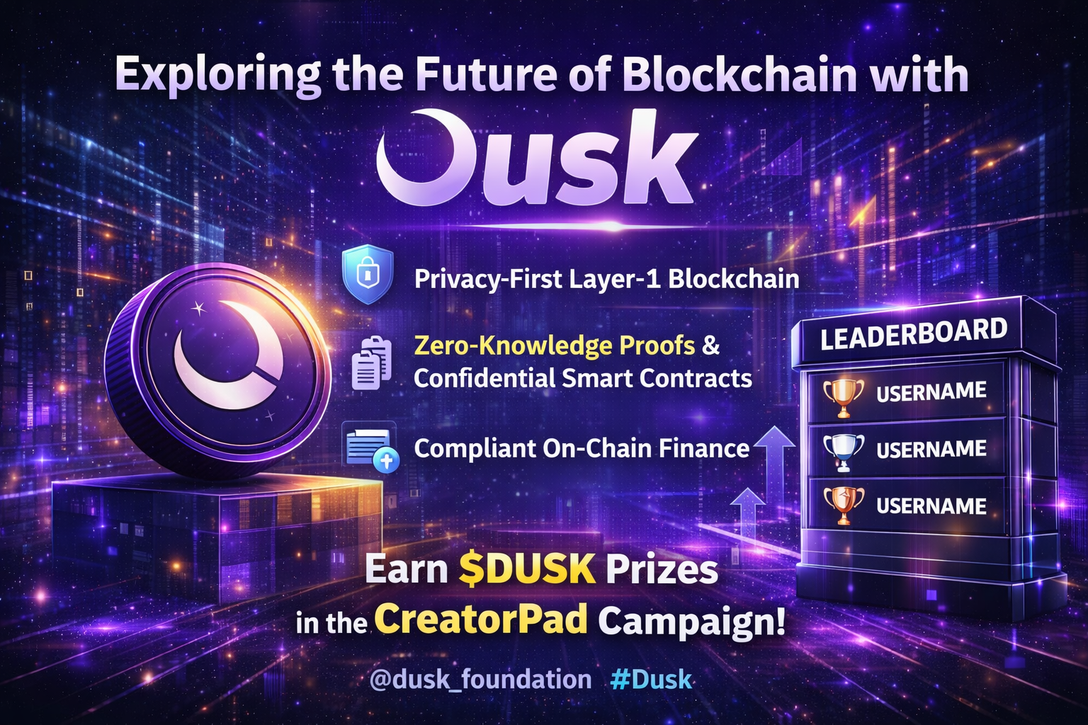 Je suis enthousiaste à l'idée de plonger dans ce qui rend le projet @dusk_foundation et l'écosystème $DUSK si captivant dans le domaine de la confidentialité et des finances réglementées. #Dusk n'est pas une simple blockchain — c'est un protocole de couche 1 axé sur la confidentialité, conçu pour apporter des infrastructures financières du monde réel sur la chaîne tout en protégeant la confidentialité des utilisateurs grâce à des cryptographies avancées comme les preuves à zéro connaissance et des modèles de transactions préservant la vie privée. Les institutions et les développeurs peuvent tirer profit de contrats intelligents confidentiels et de processus on-chain conformes, respectant à la fois les cadres réglementaires et les exigences de confidentialité. En outre, grâce à la campagne en cours CreatorPad avec Binance, un pool de récompenses de 3,059,210 $DUSK est disponible à gagner en accomplissant des tâches, en interagissant avec la communauté et en progressant sur le classement — une excellente opportunité pour les nouveaux venus comme pour les anciens participants de s'impliquer dans la vision de Dusk de finance décentralisée sécurisée et conforme. #dusk $DUSK