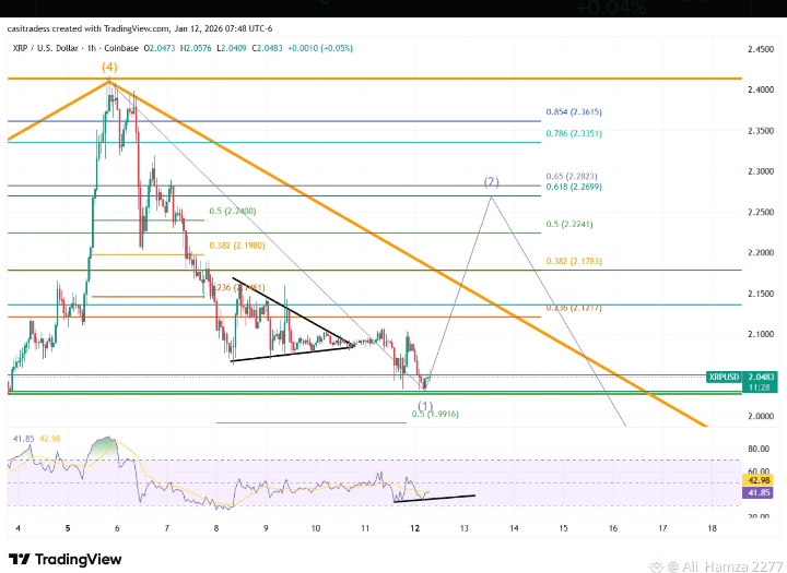 Sur le week-end, $XRP taggué la prise en charge de la macro 0.5 à 2,03 $ parfaitement — le niveau exact que beaucoup suivaient. 🎯 Ce contact a déjà déclenché une divergence haussière, ouvrant la voie à un rebond potentiel. À partir de là, une poussée vers environ 2,26 $ semble probable pour compléter la sous-ondulation 2.