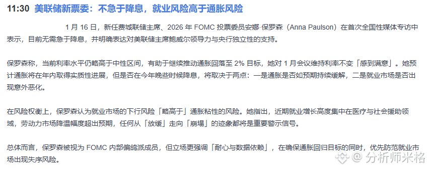 今天凌晨,美联储新票委安娜·保罗森公开表态:“不急于降息,就业风险高于通胀”。这句话看似宏观,却直接掐住了币圈的咽喉——降息预期推迟,美元可能更强,资金流向避险资产,风险市场容易承压。