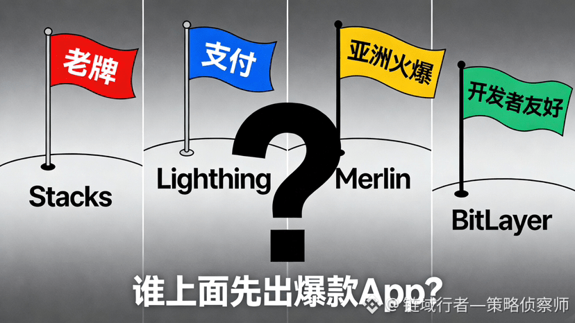 · 几个主要玩家:Stacks(老牌)、Lightning(支付专用)、Merlin(亚洲火爆)、BitLayer(对开发者友好)。