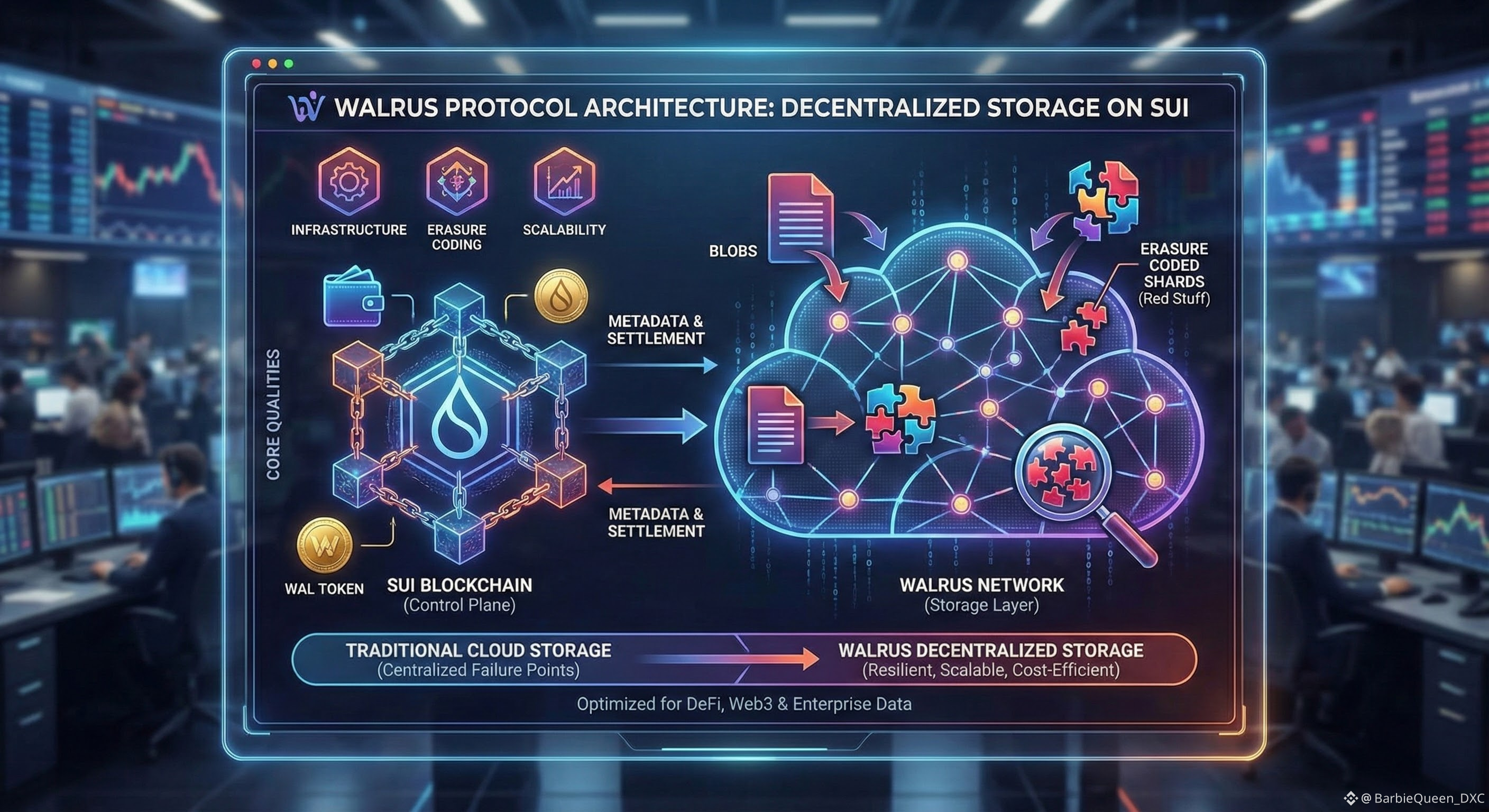 The digital age has long been reliant on centralized cloud storage providers, creating single points of failure and censorship risks. The @Walrus 🦭/acc represents a paradigm shift in this landscape. Built on the high-performance Sui blockchain, Walrus is not merely a storage solution; it is a sophisticated decentralized infrastructure layer designed to handle "blobs"—large unstructured data files—with unprecedented efficiency. By leveraging advanced cryptographic techniques and the unique properties of the Sui network, Walrus offers a robust alternative to traditional cloud services, specifically engineered for the needs of decentralized finance (DeFi), Web3 applications, and enterprise-grade data management.
