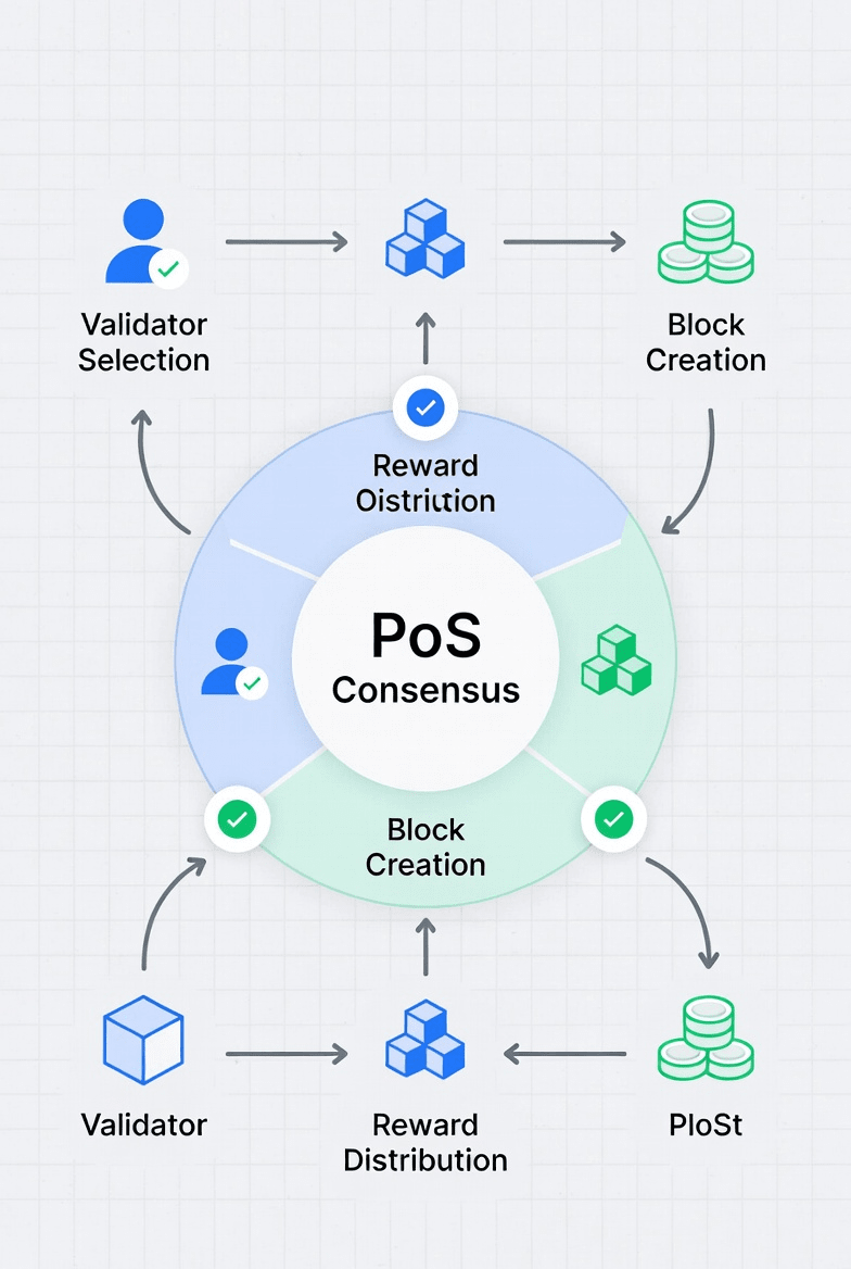 Consensus: SA PoS avoids PoW's energy puzzles. PoS secures via stakes, not compute; Ethereum's switch cut 99.95% energy. DS proportional selection efficient. Rolling finality cuts iterations, reducing redundancy.