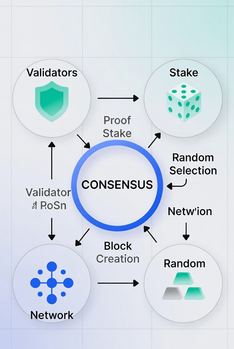 Succinct Attestation (SA) is $DUSK's permissionless, PoS consensus run by stakers called provisioners who generate/validate blocks. Using deterministic sortition (DS), it picks a single generator and unique committees per block in a fair, decentralized manner.