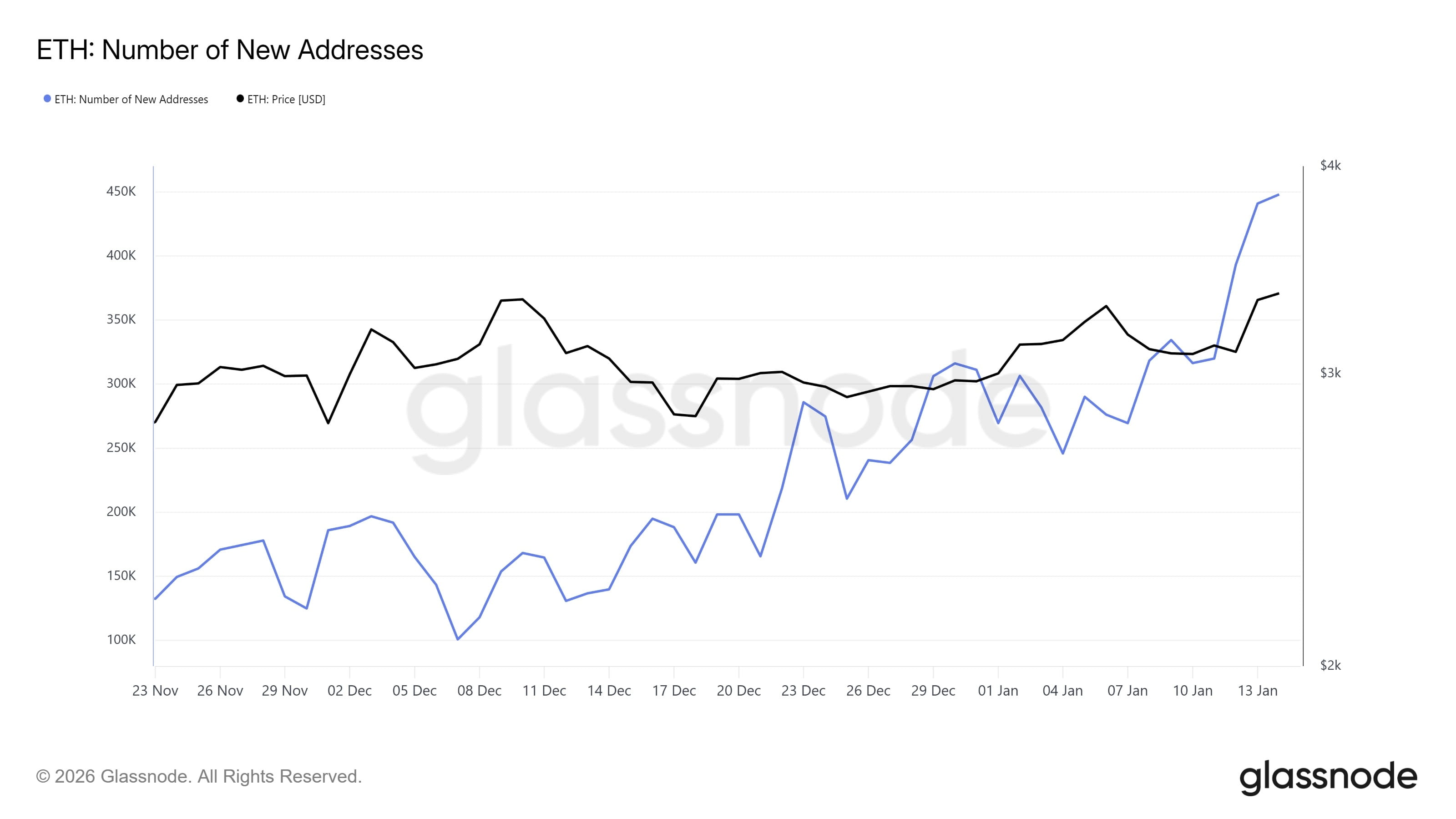 1. Afflux record de nouveaux utilisateurs : Au cours des dernières 24 heures, 447 000 nouvelles adresses actives ont été créées sur le réseau Ethereum. Ce n'est pas seulement un maximum en sept ans, mais aussi une augmentation significative par rapport aux indicateurs de la semaine dernière (~300 000 par jour). Une telle croissance indique la formation d'une demande organique et l'expansion de l'écosystème.