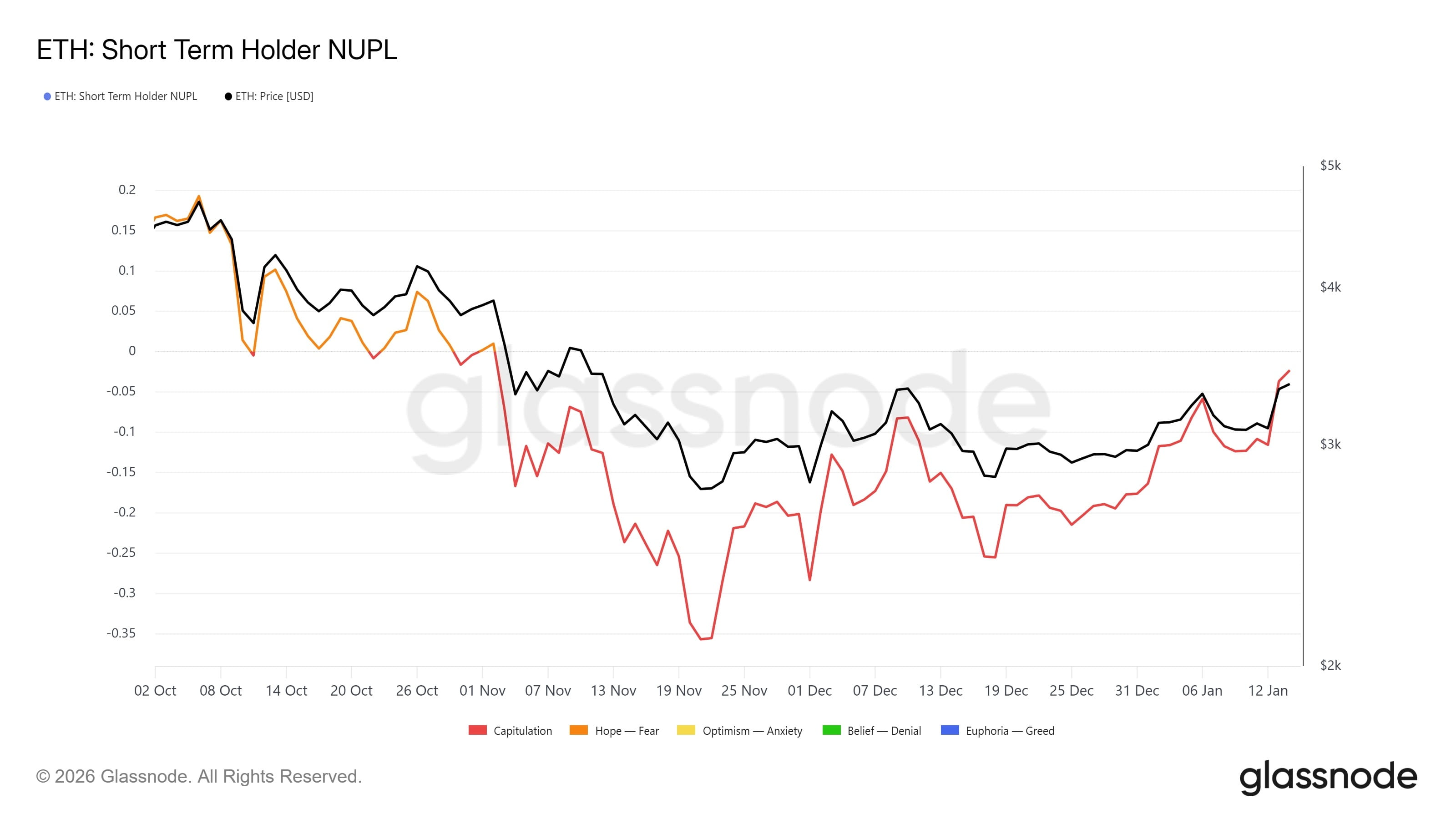3. Métrique favorable de bénéfice/perte : L'indicateur STH NUPL (bénéfice/perte non réalisé net des détenteurs à court terme) se trouve toujours dans la zone de capitulation. Cela signifie que de nombreux acheteurs récents ne réalisent pas encore de bénéfices, ce qui limite les vendeurs et réduit la pression sur le prix à un stade précoce de la hausse.