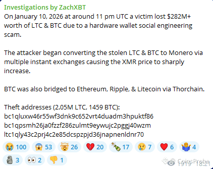 Much of the initial attention centered on a report by blockchain investigator ZachXBT, who linked the rally to a massive $282 million theft on January 10. According to the findings, stolen Bitcoin (BTC) and Litecoin (LTC) were rapidly swapped into XMR via instant exchanges, fueling speculation that the surge was driven purely by laundering activity.