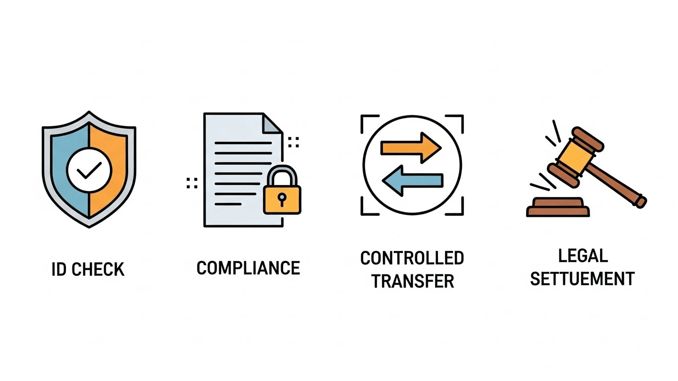 Différentes couches gèrent l'exécution, le règlement et la confidentialité