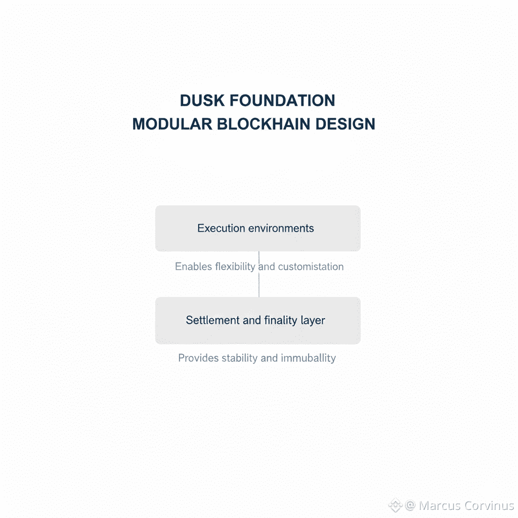 The design of Dusk reflects this from the ground up. The network is built in a modular way, separating the base settlement layer from execution environments. I see this as a sign of maturity. Settlement should be stable, predictable, and boring. It should finalize transactions cleanly and move on. Execution can evolve on top of that without putting the foundation at risk. If finance is going to live on chain, the base cannot change every year.