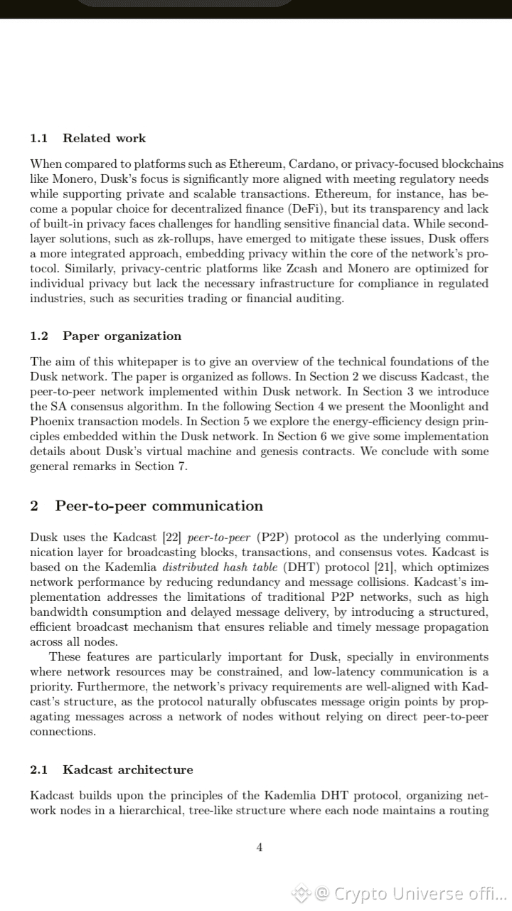 Using advanced zero-knowledge cryptography, DUSK enables transactions and smart contracts that are private by default, yet still verifiable and compliant. This allows financial activity to happen securely on-chain without leaking sensitive information — a critical requirement for regulated markets.