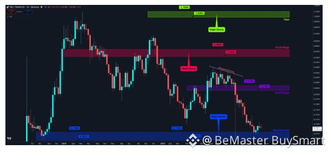 👉 SEI has dropped into a crucial support zone where it's now trying to find its footing. The token retraced to a dark blue major support area and hasn't been able to break away cleanly. What's interesting here is that the price isn't crashing through this level—it's just sitting near it, which suggests sellers are running out of steam at this point.