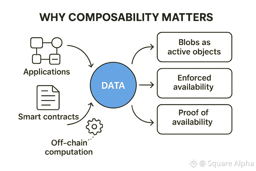 This makes data composable — developers can embed storage guarantees into business logic without trusting any centralized server.