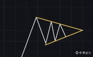 三角形形态中价格范围逐渐聚合收敛,且随后通常伴有盘整趋势。三角形本身表示趋势的暂停,但有时也可能代表反转或延续。