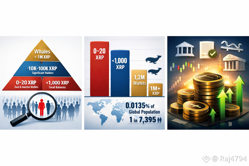 This structure matters for market behavior. XRP does not currently trade like an asset that is over-owned by retail participants. Instead, it resembles an asset still expanding its holder base. Narrow ownership creates optionality — new demand does not need to replace existing holders, only expand a relatively small participation pool.$XRP