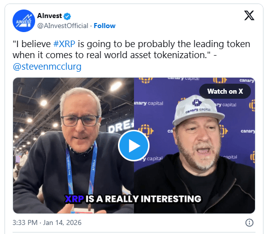 McClurg croit que XRP devient de plus en plus pertinent dans le marché croissant des actifs du monde réel tokenisés. Du point de vue de Canary Capital, le XRP Ledger montre un alignement avec les systèmes financiers traditionnels d'une manière que de nombreuses plateformes blockchain ne font pas.