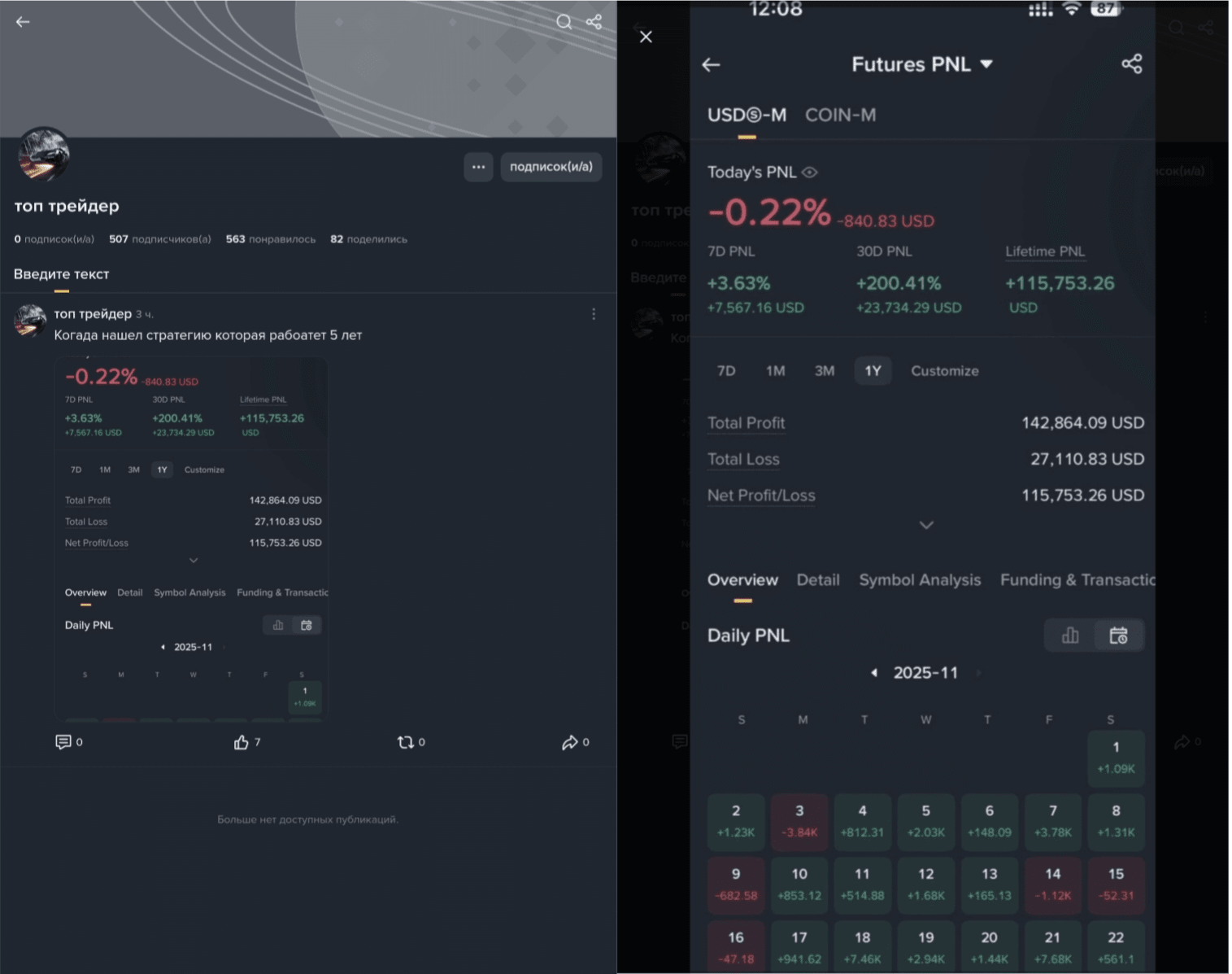 💡Remarquez 500 abonnés et un post d'il y a 3 heures (avec Pnl pour novembre 2025😂😂😂)