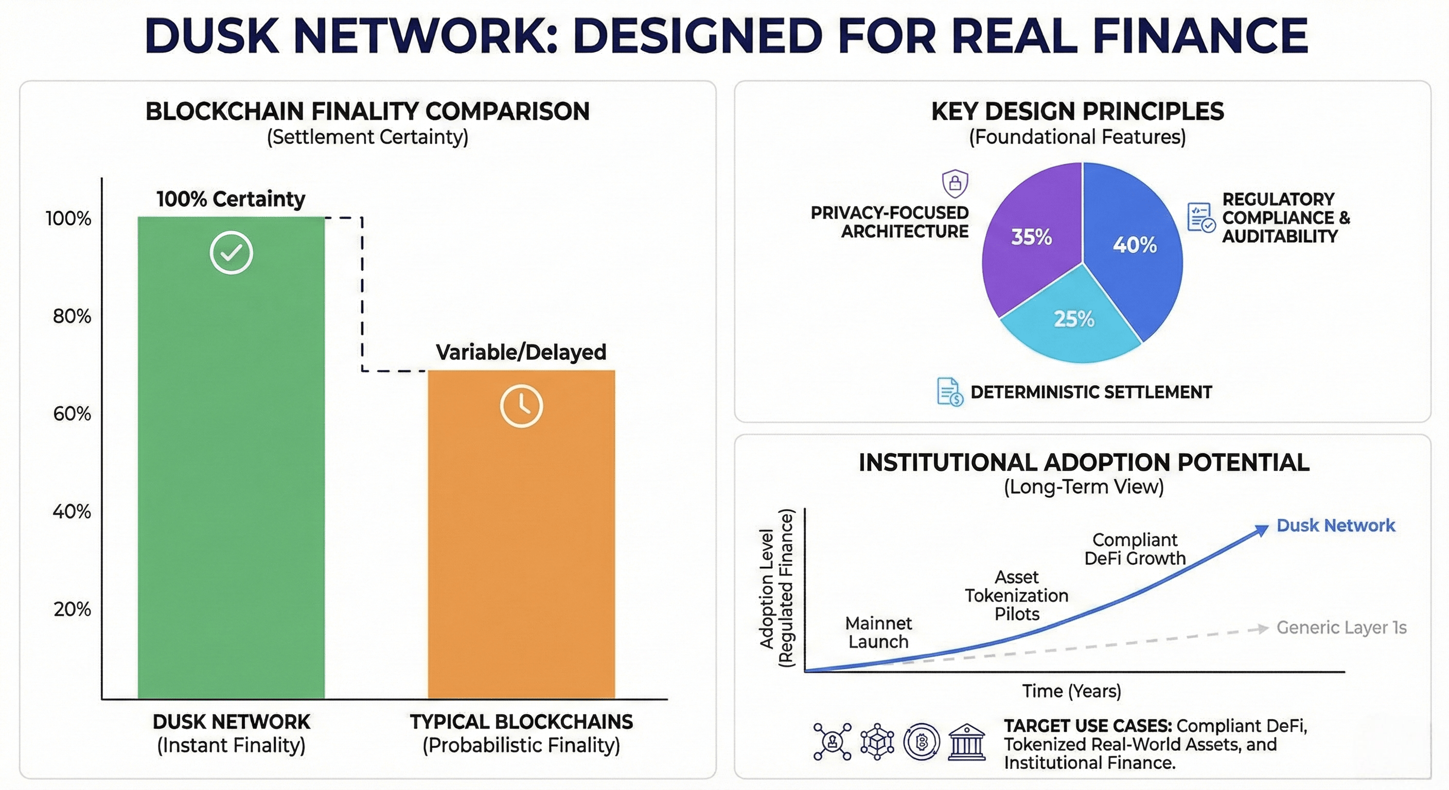 À ma connaissance, Dusk Network représente une tentative sérieuse de relier la confidentialité, la conformité et le règlement déterministe à la couche de base. Cela seul en fait un projet qui mérite d'être suivi, surtout pour quiconque pense à long terme au sujet de la blockchain dans la finance réglementée.