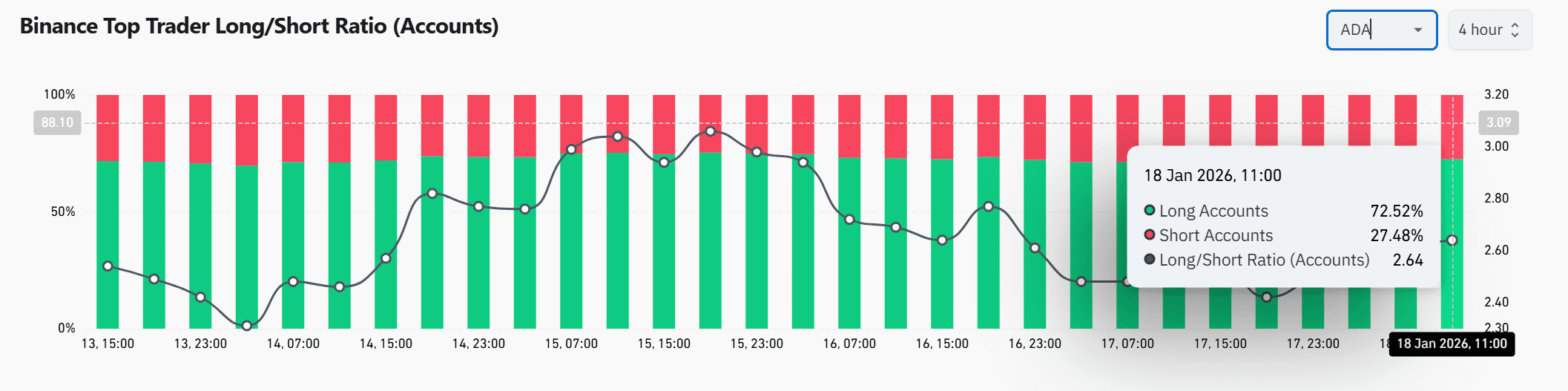 Les données de Binance montrent que 72,52 % des comptes principaux sont en position longue, seulement 27,48 % en position courte. Cela signifie que les vétérans ont tendance à se positionner pour l'avenir, plutôt que de suivre les mouvements à la hausse ou à la baisse. Bien sûr, ce n'est que le nombre de comptes et ne correspond pas entièrement au volume de levier, mais d'un point de vue du sentiment du marché, la confiance est déjà là.