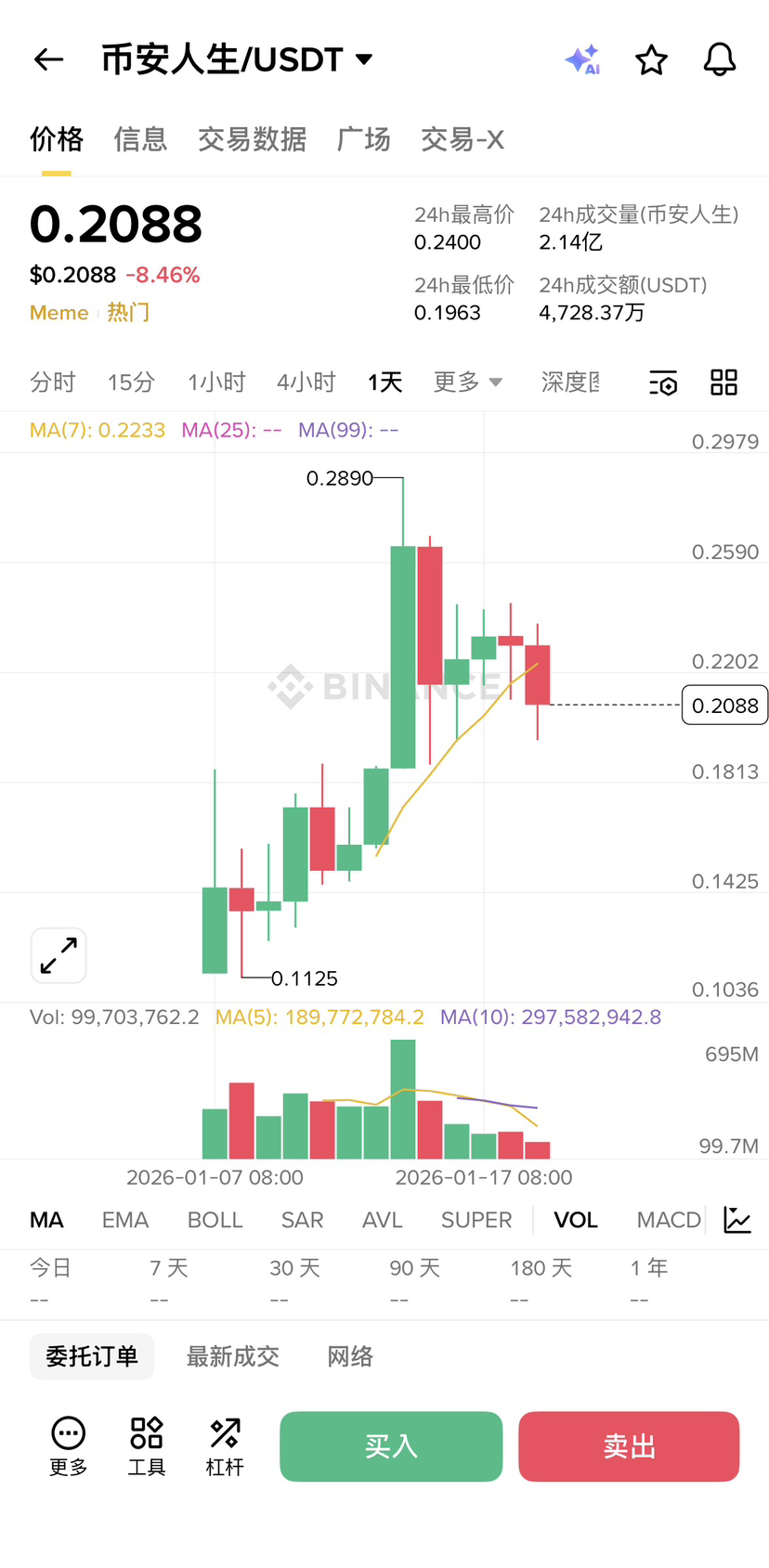 Partagez vos expériences de gains et de pertes, qui devine$币安人生 que cela peut remonter à $0.4 ?🚀🐴