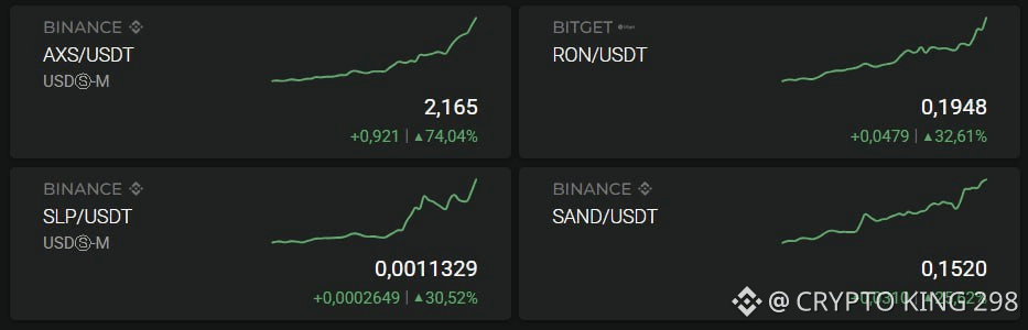 While $BTC eats tariff panic, GameFi is having its best week in months. AXS up 100%+ weekly, just crossed $2. SAND +30%, MANA +21%, RON +20%. Sector cap near $7B🤩