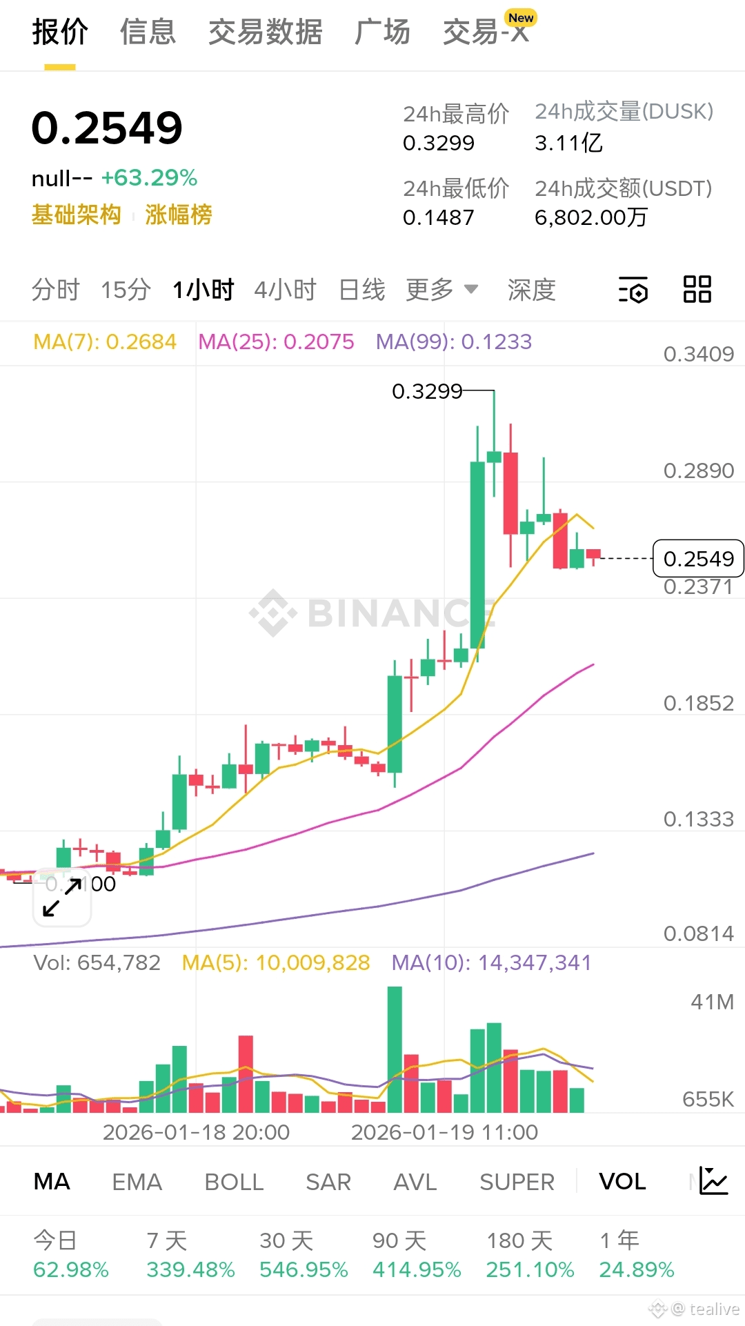 市场上 $DUSK 交易量大幅增长,部分交易平台还推出相关衍生合约交易。