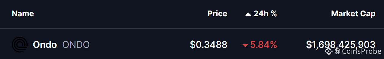 Notably, selling pressure appears to be easing near this zone. Buyers have stepped in to defend the level, with ONDO currently hovering slightly above it around $0.348 — a sign that demand may be emerging after weeks of sustained downside.