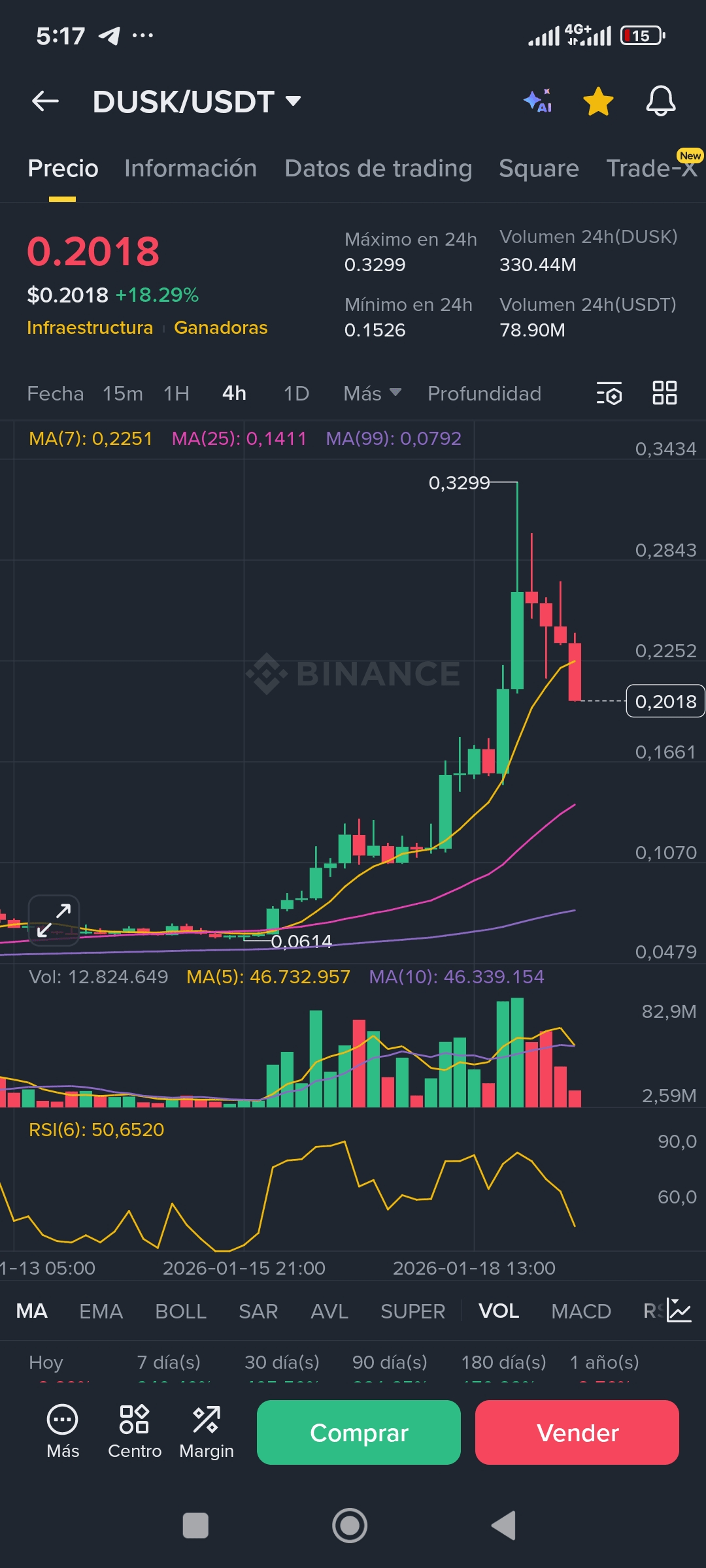 DUSK a connu un rallye impressionnant. Entrer maintenant est risqué en raison de la volatilité, mais surveiller le support des $0.15 - $0.16 pourrait offrir une opportunité d'entrée plus sûre pour ceux qui cherchent le rebond. Toujours avec Stop Loss ! 🛡️