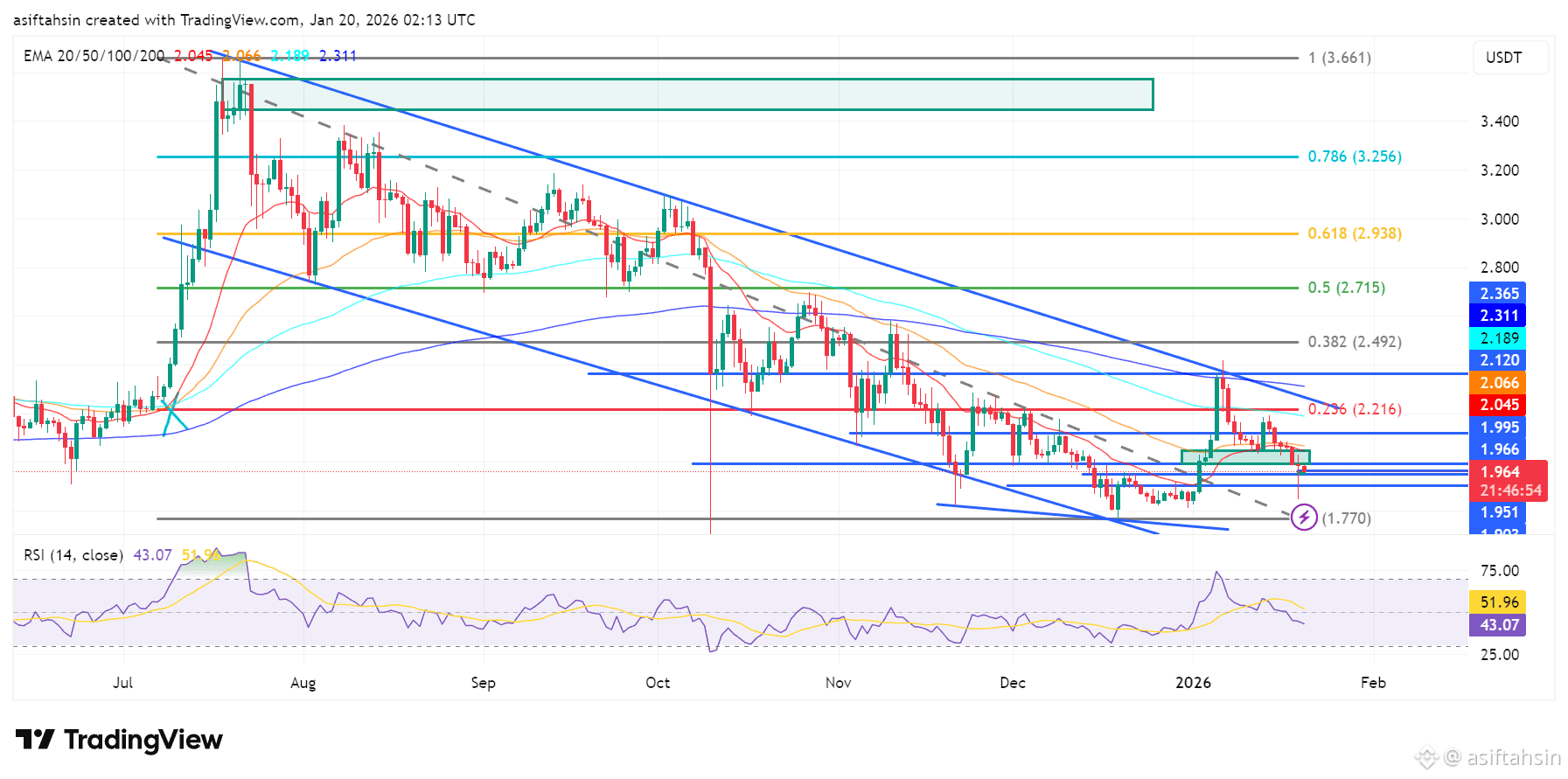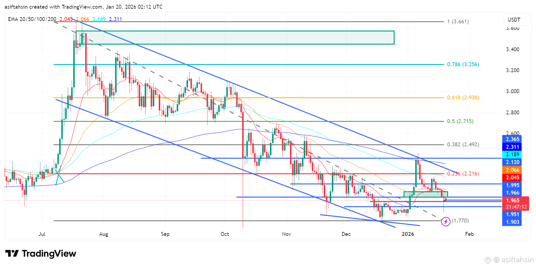 Failure to hold above $1.95–$1.90 would expose XRP back to the $1.77 macro demand floor.