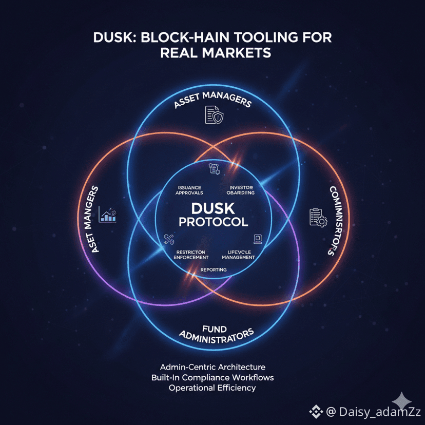 Dusk is approaching blockchain infrastructure from a different angle. Instead of focusing only on developers and smart contract flexibility, Dusk is building tooling for the people who actually operate financial markets every day. Asset managers, compliance teams, and fund administrators are at the center of this design choice, and it shows in how the protocol is evolving.