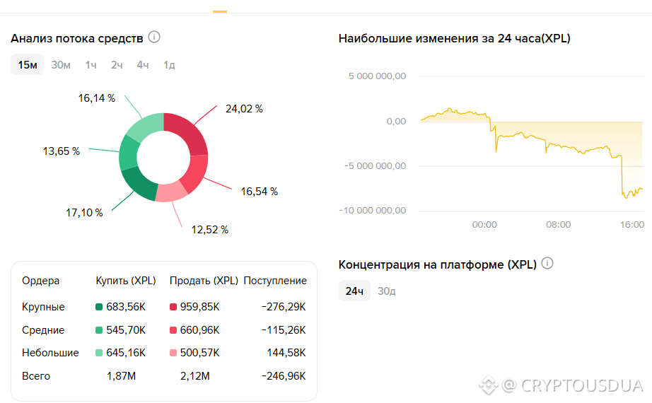 Я смотрю на XPL и вижу резкий контраст между он-чейн метриками и ценой токена ⚖️ За последние 24 часа XPL просел более чем на −5% (≈0,1234), закрепившись в зоне сильного давления продавцов 📉 Технически рынок выглядит тяжело, но фундаментальные данные Plasma заставляют не игнорировать актив.