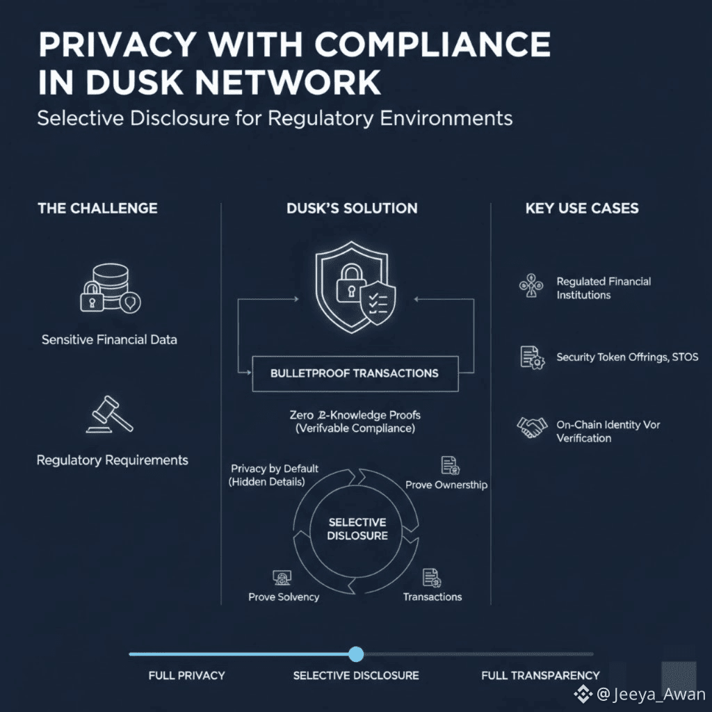 One of the strongest advantages of Dusk’s Bulletproof-based architecture is its ability to support regulatory compliance. Through selective disclosure, users can prove ownership, solvency, or transaction validity without revealing full transaction details.