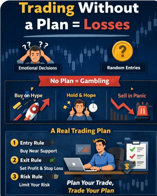 In reality, most losses happen because people trade without a plan.