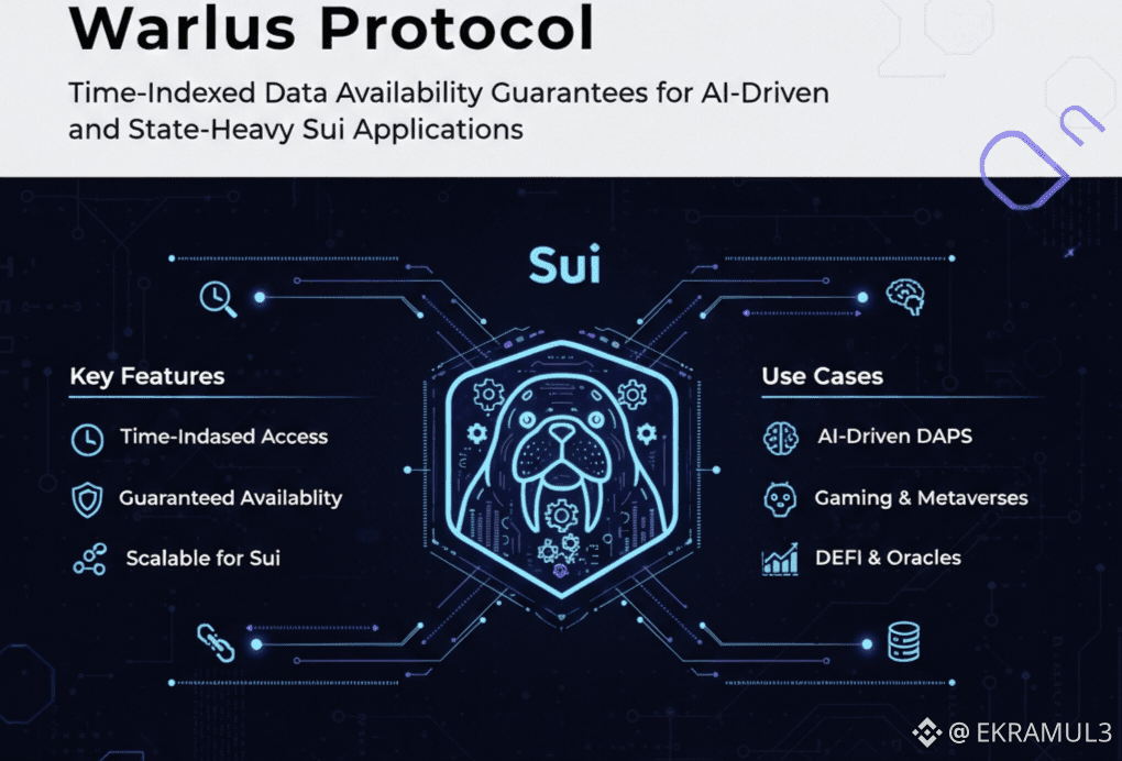 One of the emerging realities of modern on-chain applications is that computation is no longer the bottleneck data persistence is. AI-assisted agents, stateful social graphs, dynamic NFTs, and long-lived gaming environments all produce information that must outlive the transaction that generated it. The Sui execution model already solves parallel compute and global shared state coordination. What it does not natively solve is time-bounded access to meaningful off-chain data that needs to remain retrievable long after the original write. Walrus Protocol fills that gap by introducing a time-indexed availability layer that transforms blob storage from a passive backend into a verifiable service that can be accounted for, scheduled, renewed, and settled on-chain.