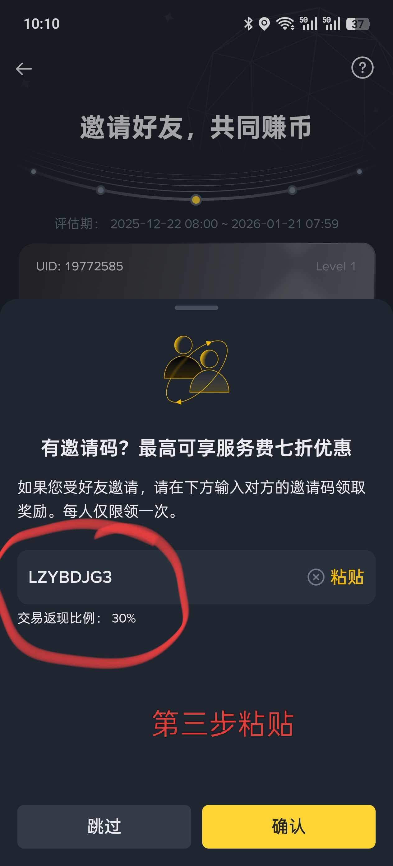 - Rappel clé : les utilisateurs n'ayant pas rempli le code d'invitation verront les frais entièrement reversés à la plateforme ; après avoir rempli le code d'invitation, non seulement vous pouvez verrouiller un cashback de 30 %, mais vous pouvez également débloquer d'autres avantages écologiques par la suite.
