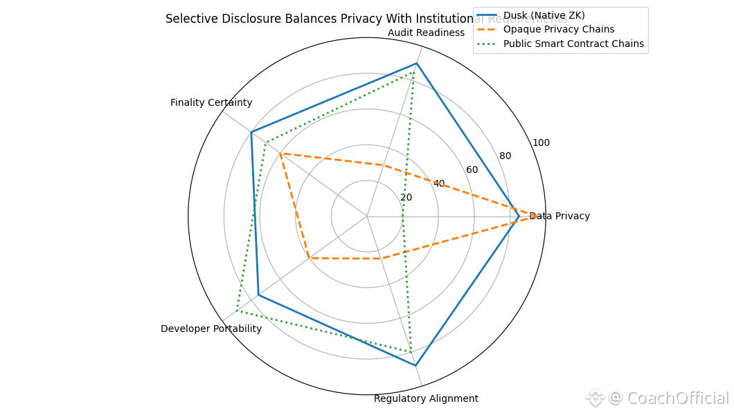 There are real risks. Competing privacy-focused platforms such as Secret or Aztec have larger developer communities and could iterate faster. Regulatory clarity cuts both ways; frameworks like MiCA might validate Dusk’s approach or impose constraints that slow deployment. A serious failure mode would be a flaw in the PLONK circuits during a high-value settlement, undermining trust overnight. Even auxiliary pieces like Walrus depend on sustained node participation; if incentives weaken, data availability assumptions could be tested.
