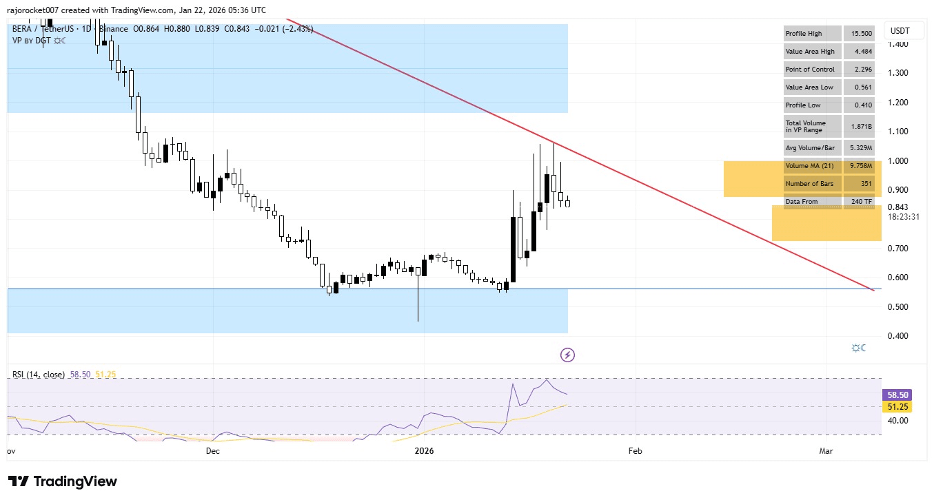 Entrez un trade short si $BERA ferme en dessous de $0.70 sur une période quotidienne avec un volume croissant.