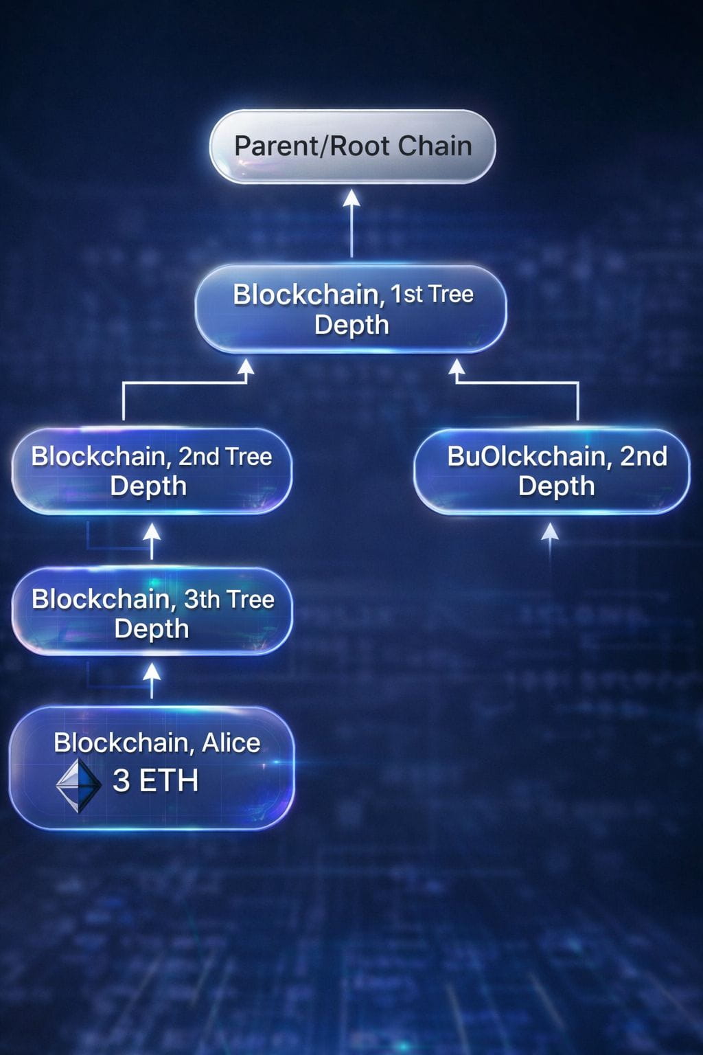 Busy highways get help from smaller roads branching off them. These side paths handle cars so the main road does not jam up. The big chain works like that crowded highway. Smaller versions move some work away from it. They carry data most of the time. Only when things must be checked do they touch the central lane again. One connects back just for updates or exits.