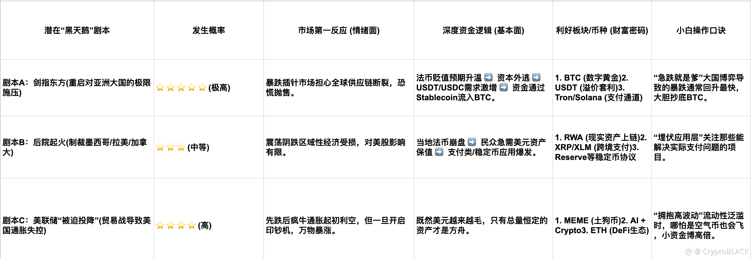 📊 第一部分:2026年宏观黑天鹅·币圈应对策略表
