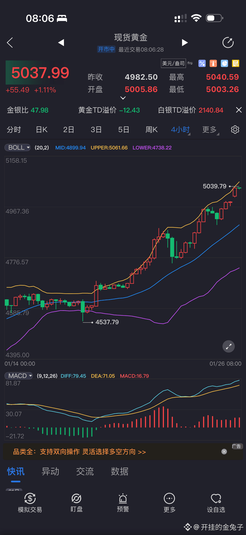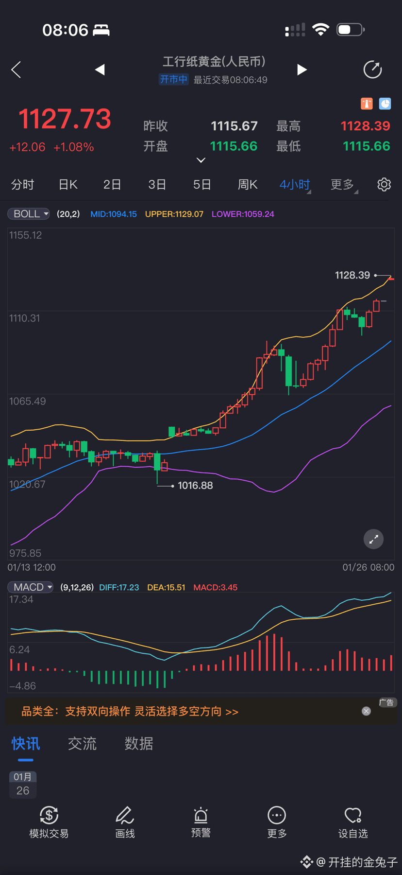 兔子1月1日奇门遁甲占卜黄金后,1月4日买入,累计投资 工行20W + 建行N W 纸黄金 + N克银行实物金条