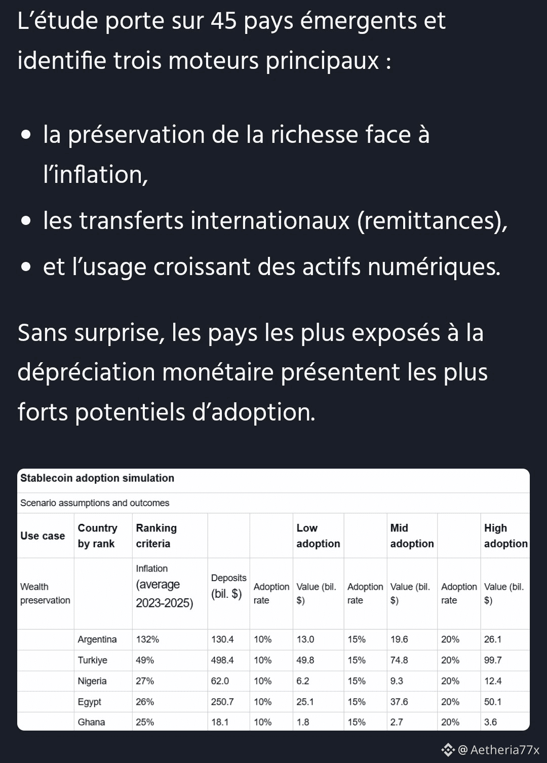 Une news "poids lourd" vient de tomber : S&P Global prévoit que dans les pays à forte inflation, jusqu'à 20 % des dépôts bancaires pourraient être convertis en stablecoins (dollars numériques). L'argent ne dort plus dans les banques, il s'installe sur la blockchain pour la vitesse et la sécurité.