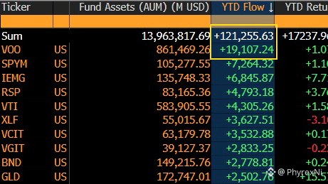 Ces fonds vont principalement dans des ETF liés au S&P 500, y compris $VOO, $SPYM et $RSP. Le montant total des fonds entrant dans ces trois actifs a déjà dépassé 31,16 milliards de dollars, représentant environ 25% du flux total de fonds.