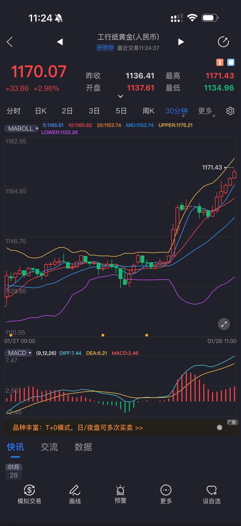 Or papier ICBC (yuan) 1170 yuan/gramme