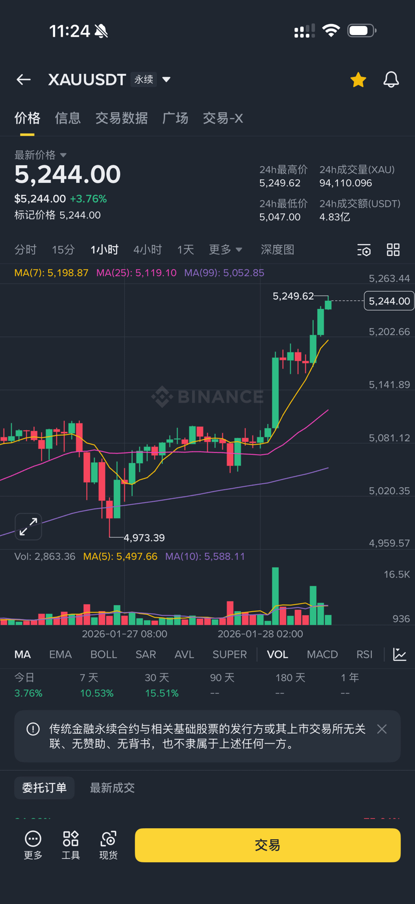 Hier, j'ai vu beaucoup de gens sur X faire des paris à la baisse, ils utilisent la mentalité de jouer avec les crypto-monnaies pour parier à la baisse sur l'or et l'argent, en fait, j'en suis très surpris.