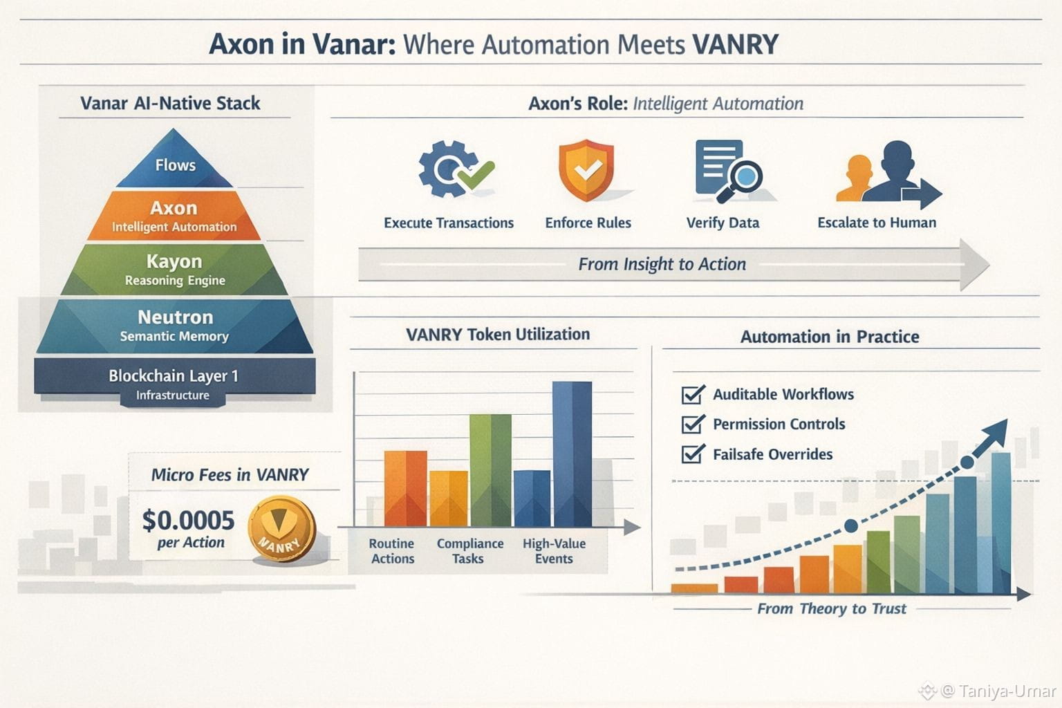 @Vanarchain In the last year, “AI on-chain” has stopped sounding like a quirky tagline and started feeling like a practical design problem people are trying to solve. Not in the abstract, but in the messy places where data is scattered, rules change, and somebody still has to press the button. Vanar’s stack frames that problem in a simple sequence: remember, reason, automate. Axon is the piece that makes the third verb matter, and that’s why it keeps showing up in discussions around VANRY.
