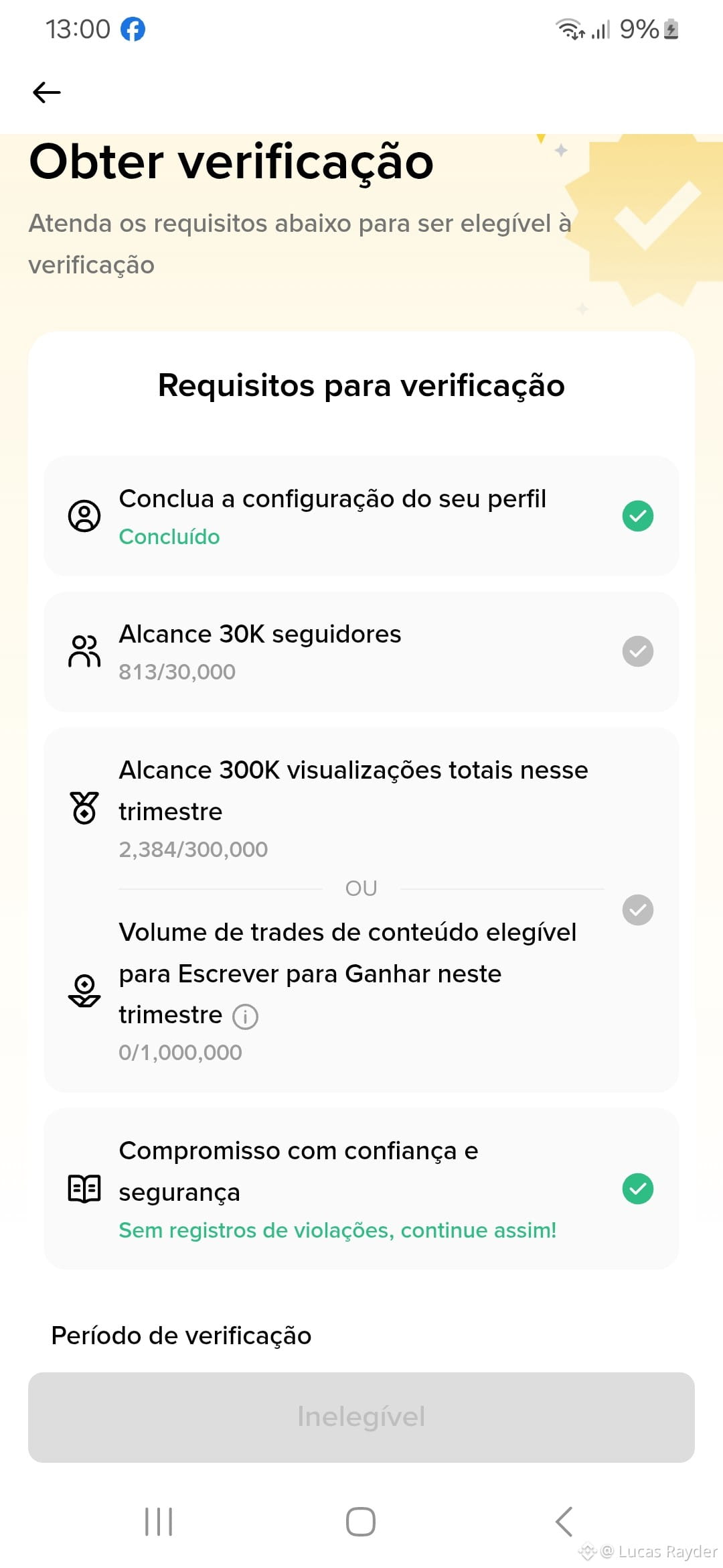 Então por que ainda exigem 30K seguidores e 300K visualizações para dar o selo de verificação?
