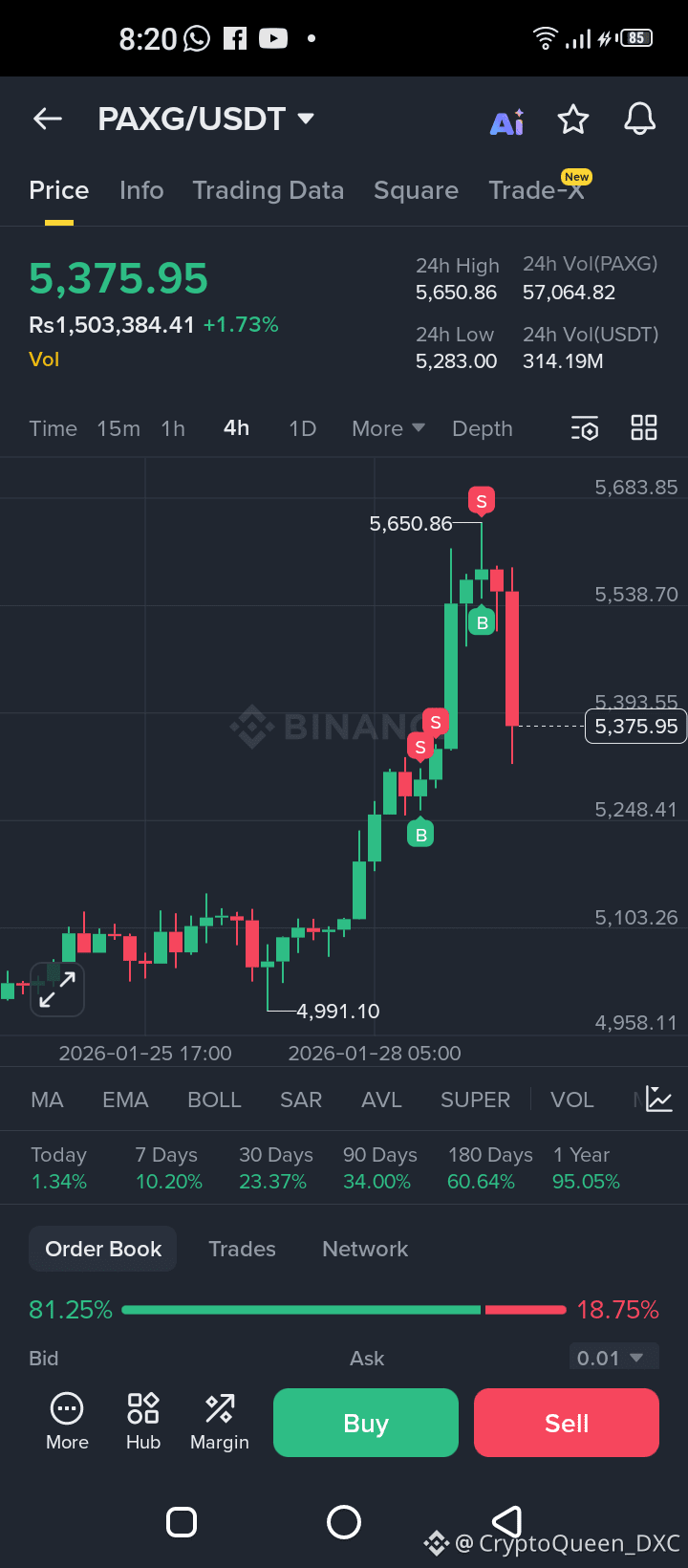 * The News: Investors are panicking over a weakening US Dollar (which hit a four-year low) and "de-dollarization" trends. This massive surge forced PAXG to spike to that $5,650 level you saw on your chart.