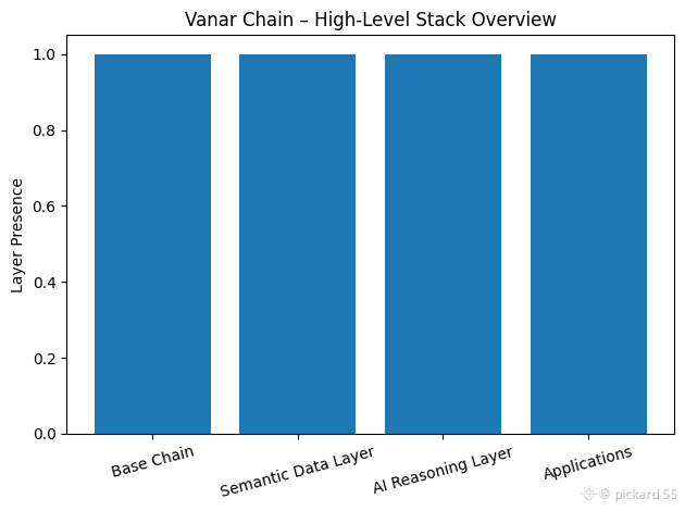 Vanar’s narrative is trying to reverse that gravity. It is saying: do not treat intelligence, memory, and validation as something you bolt on later with external services. Put them into the stack itself, so the chain can store more than balances and events. Store meaning. Store context. Store proofs that can be searched and acted on. On the official site, Vanar describes the stack as a modular L1 plus Neutron for semantic memory and Kayon for contextual AI reasoning, with additional layers described as coming soon. The key idea is that these are not optional add-ons. They are positioned as integrated layers that turn simple programmable apps into intelligent systems. �