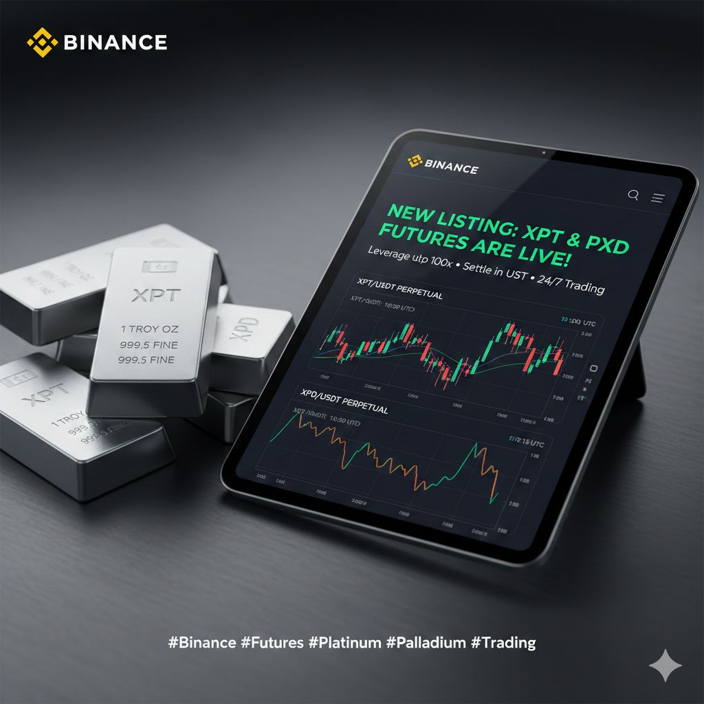 Binance acaba de habilitar futuros de Platino (XPT) y Paladio (XPD) liquidados en USDT.