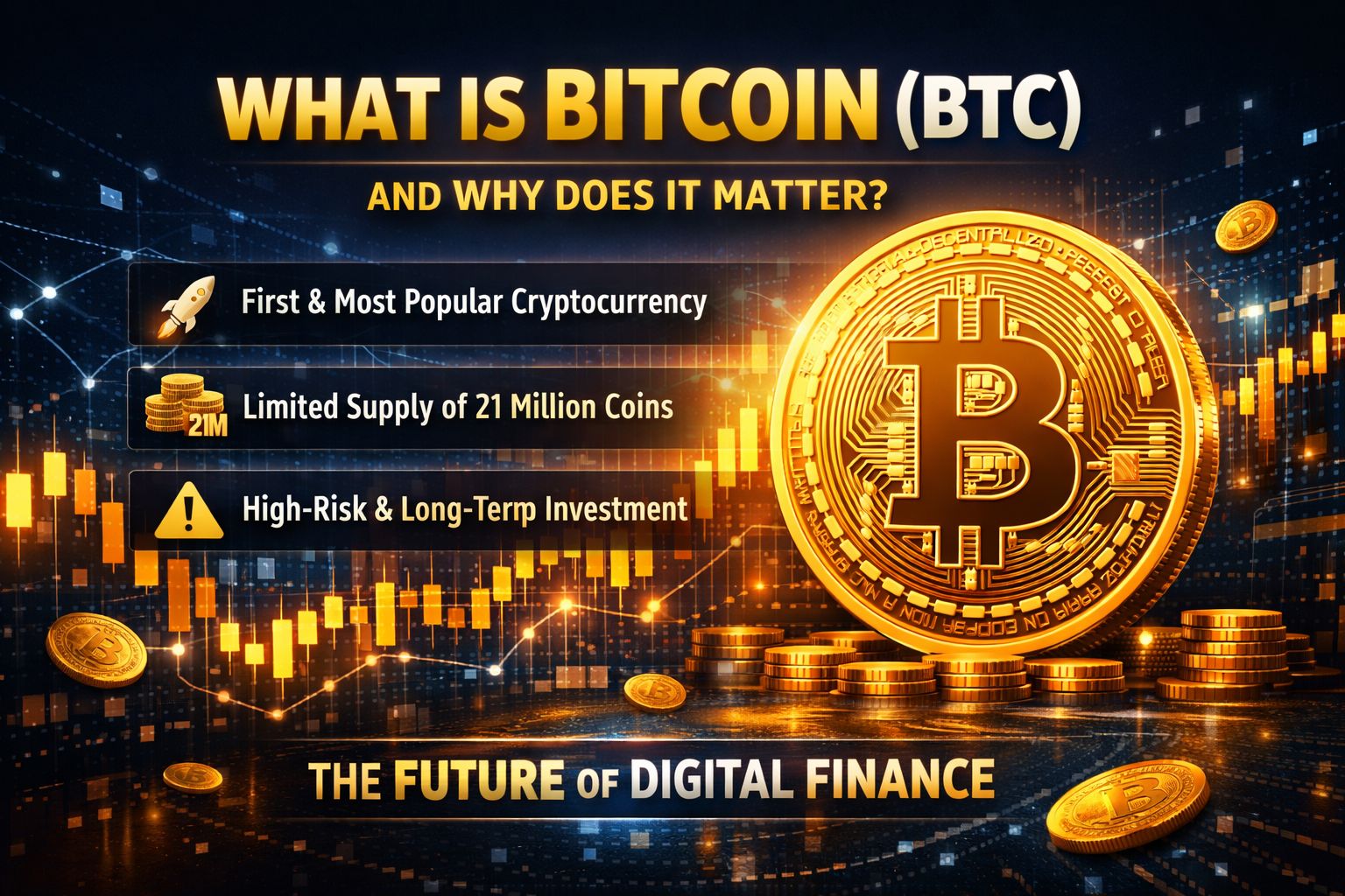 Le Bitcoin est la première et la plus populaire des cryptomonnaies au monde, lancée en 2009. Il fonctionne sur la technologie blockchain, permettant des transactions sécurisées et transparentes sans avoir besoin de banques ou d'autorités centrales.